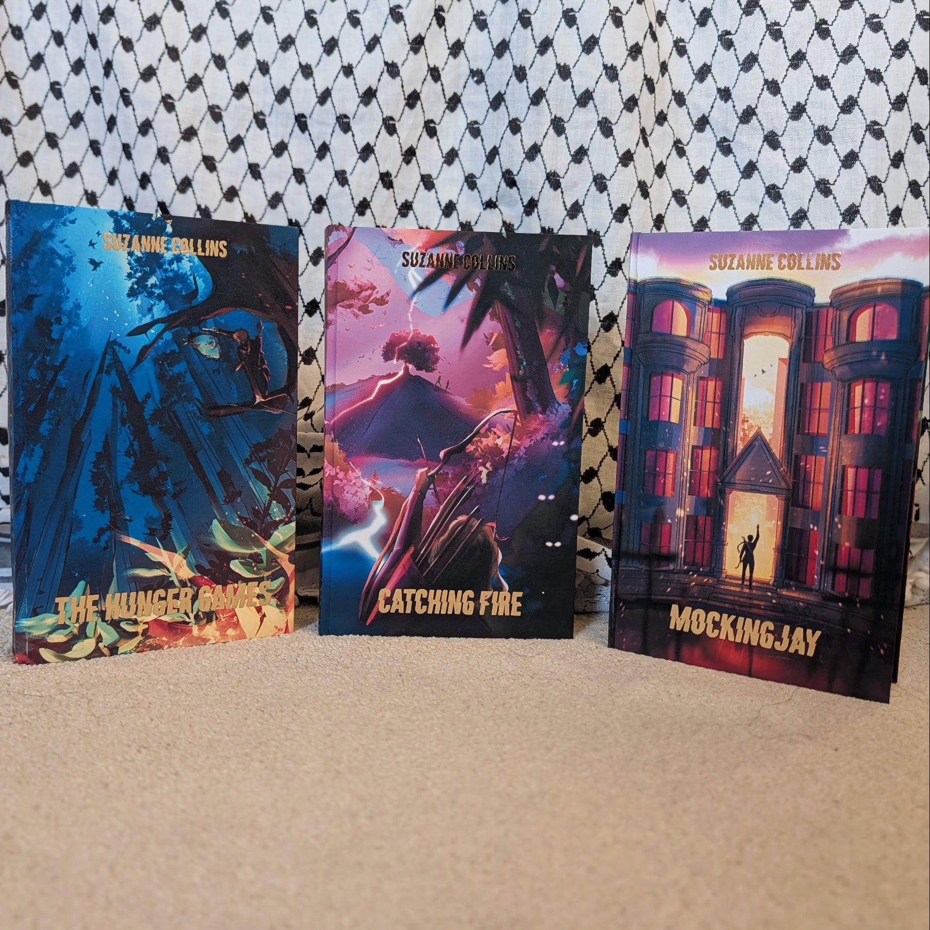 This complete set of The Hunger Games, Catching Fire, and Mockingjay has been fully recased in hardcovers, each wrapped in a soft-laminated finish for long-lasting durability. The covers feature original panoramic artwork by @ghoulsed, designed as seamless scenic wraps that bring the world of Panem vividly to life.